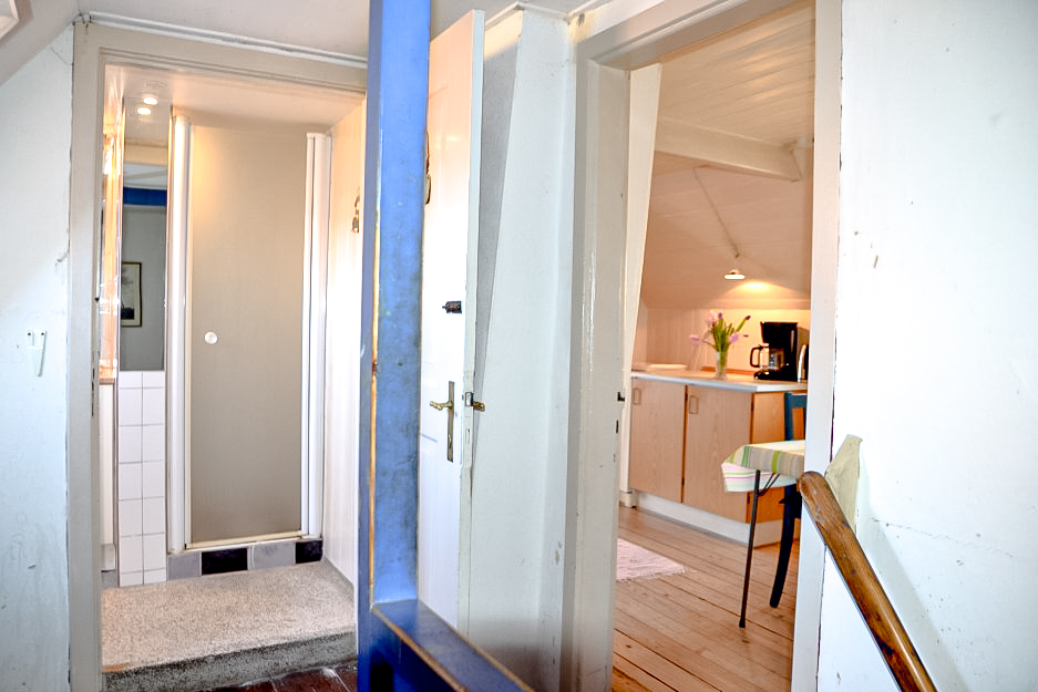 Som tillæg til lejligheden kan lejes to soveværelser: soveværelse A med bord og dobbeltseng og soveværelse B med dobbeltseng. Disse værelser er på gang med badeværelset, men I vil altid have badeværelset for jer selv. Trappen er forholdsvis stejl og derfor ikke for gangbesværede.